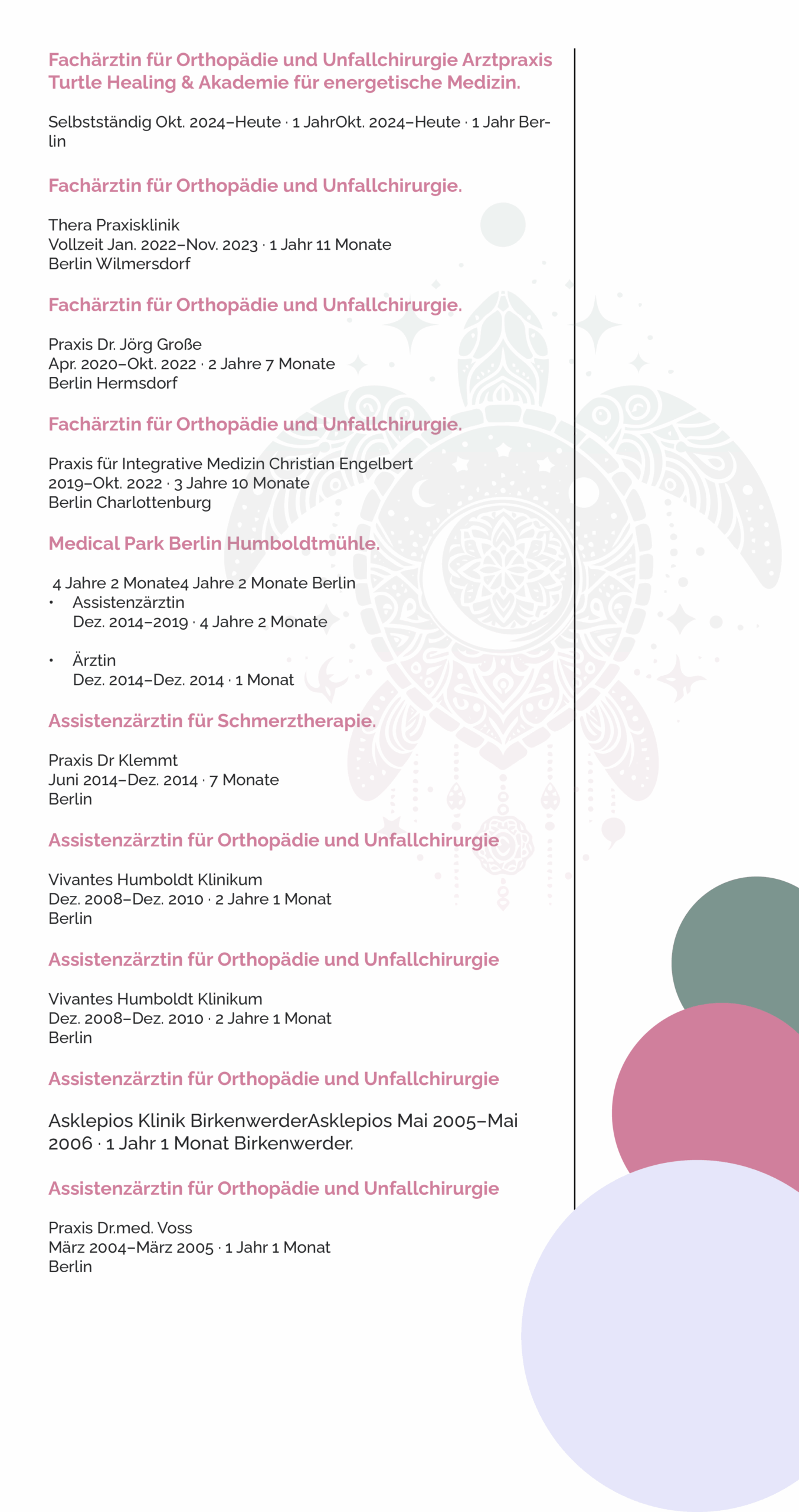 Seit 2002 wohne ich in Berlin. Im Jahr 2004 begann ich meine Facharztausbildung in der